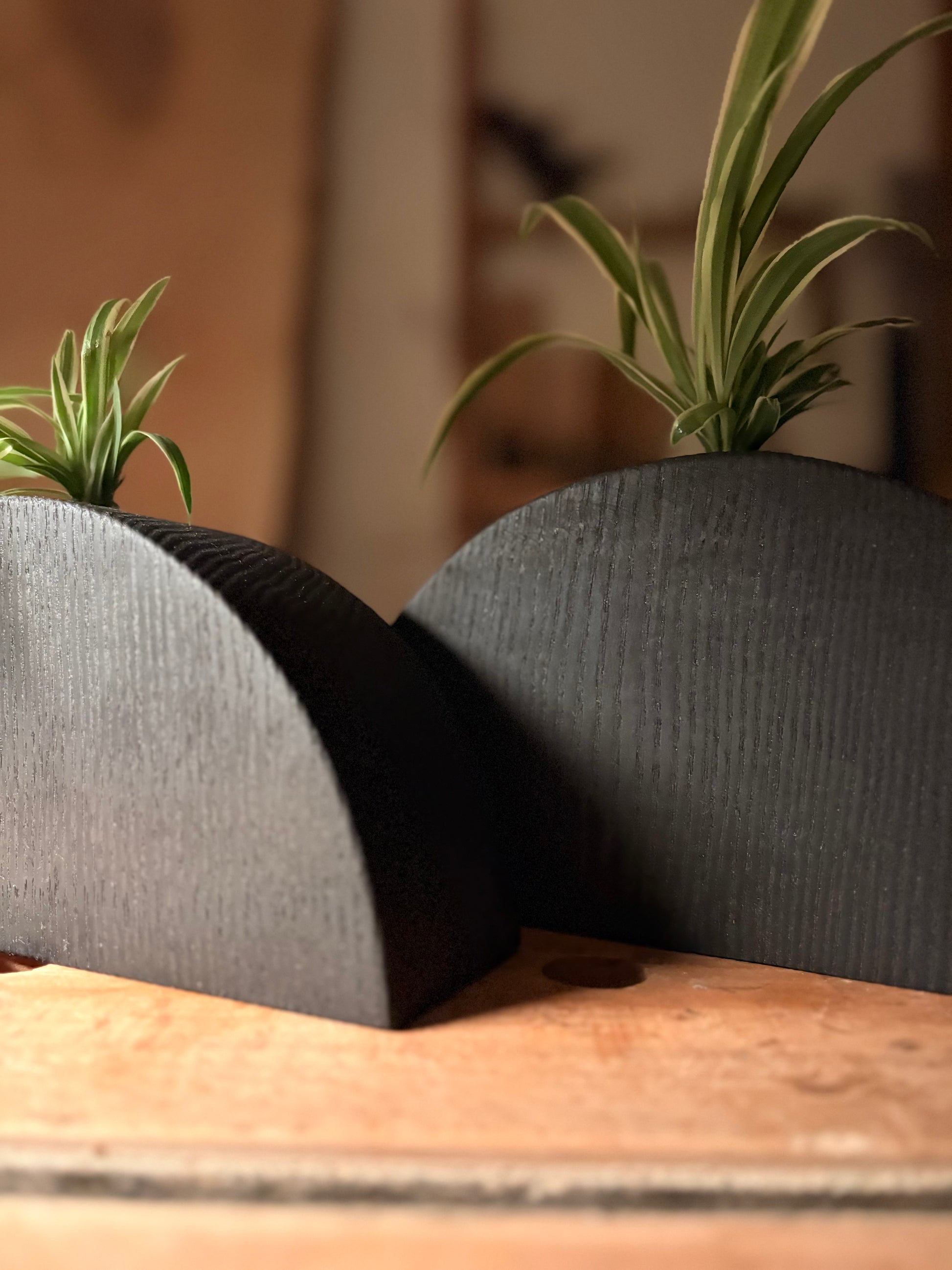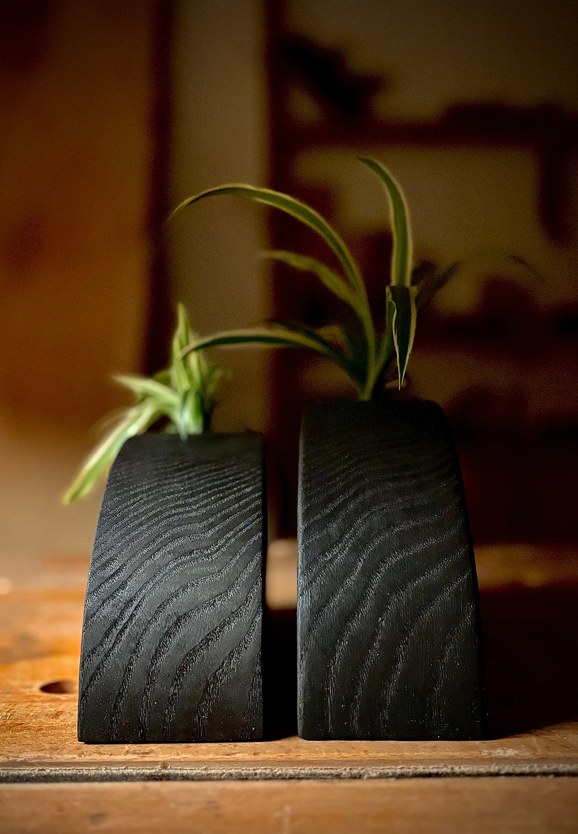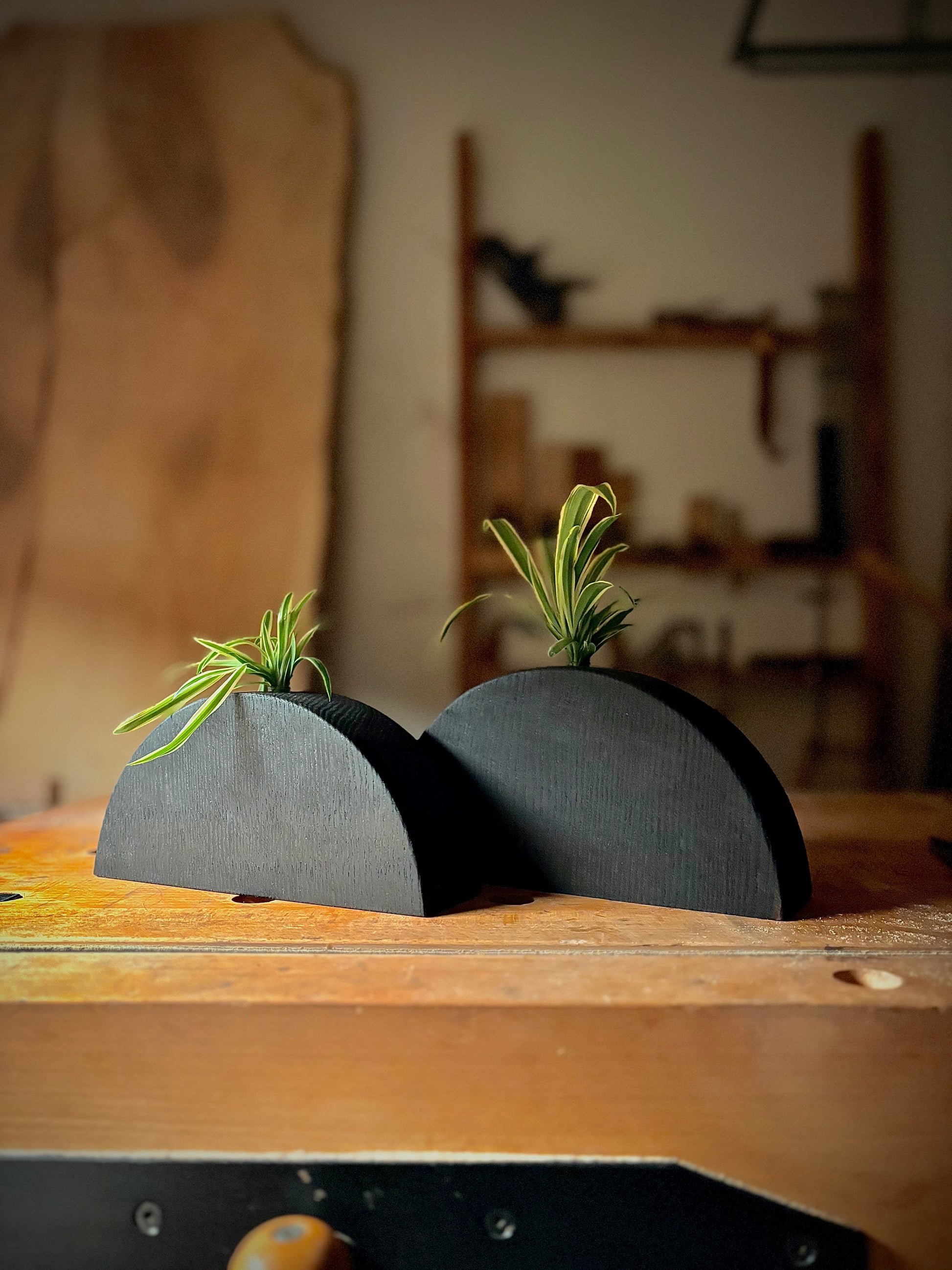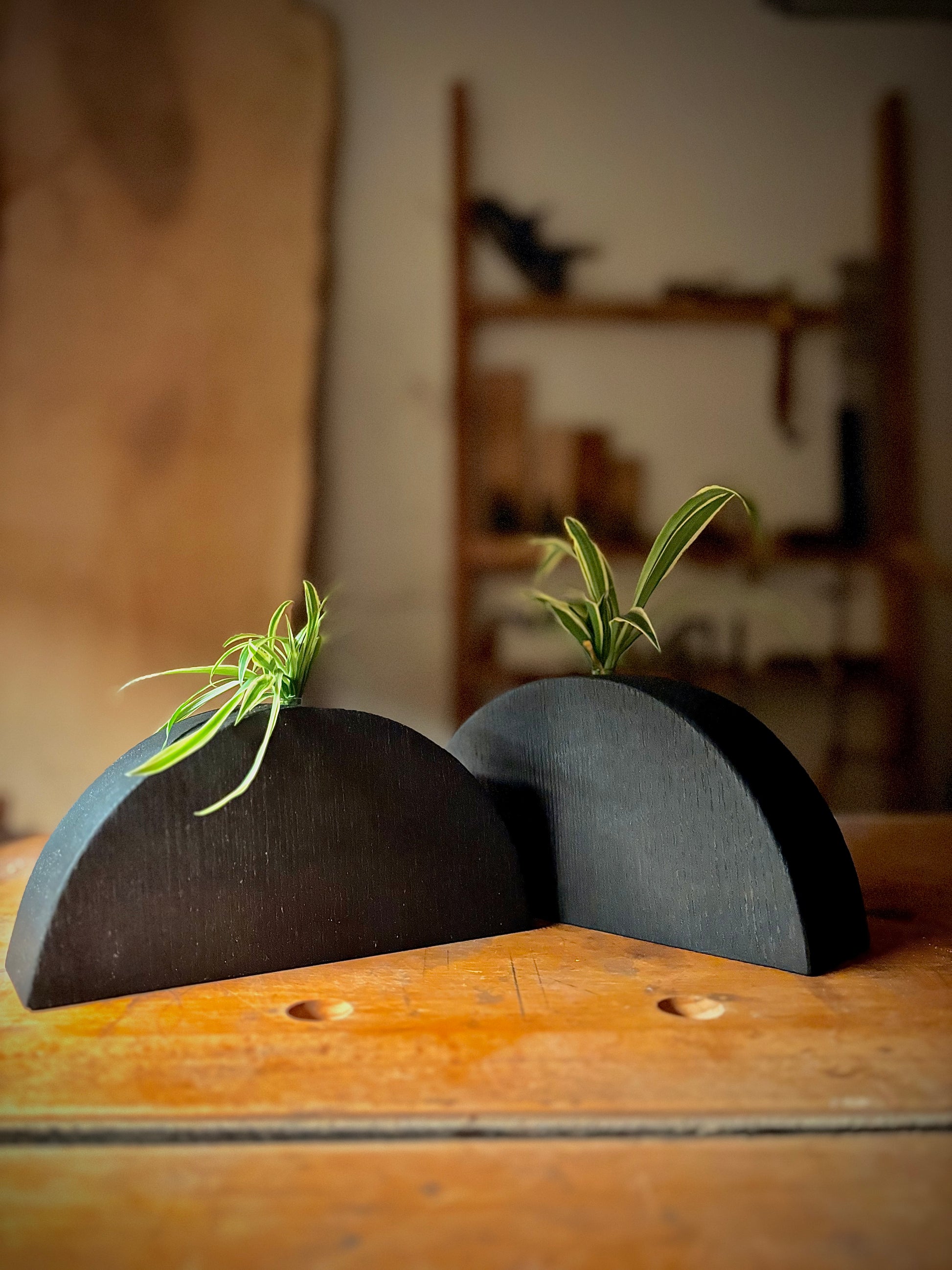 Leth - the half moon vase. Limited run of two unique charred ash vases. Style it with the season and add whatever flowers you have in the garden or gather on a foraging walk