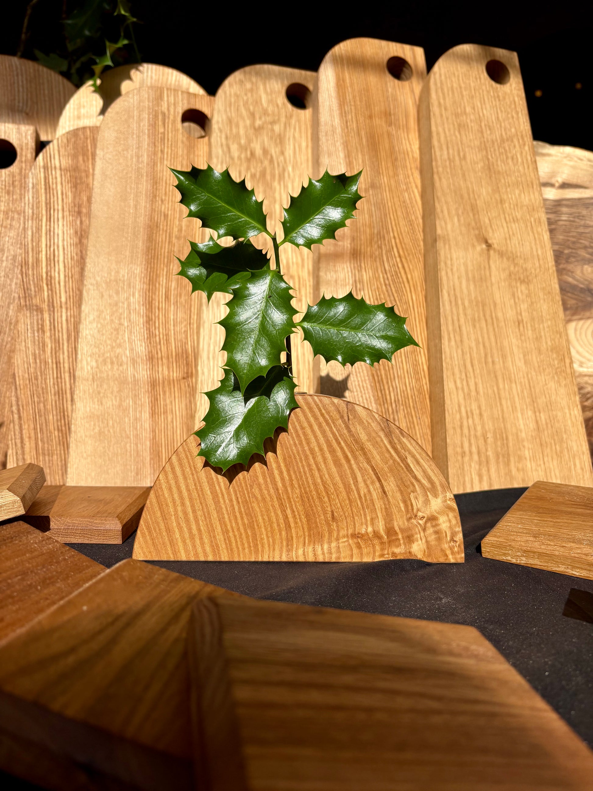Each vase is handmade from Irish oak, ash or elm, carefully selected for their unique character and colour from the mountains of gorgeous timber in the Bough and Burr workshop. The form is inspired by evenings gazing at the sky, get lost in nature with a half moon of your own